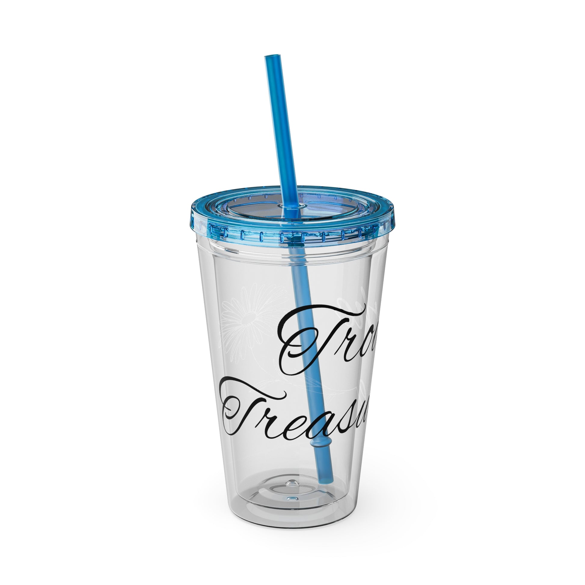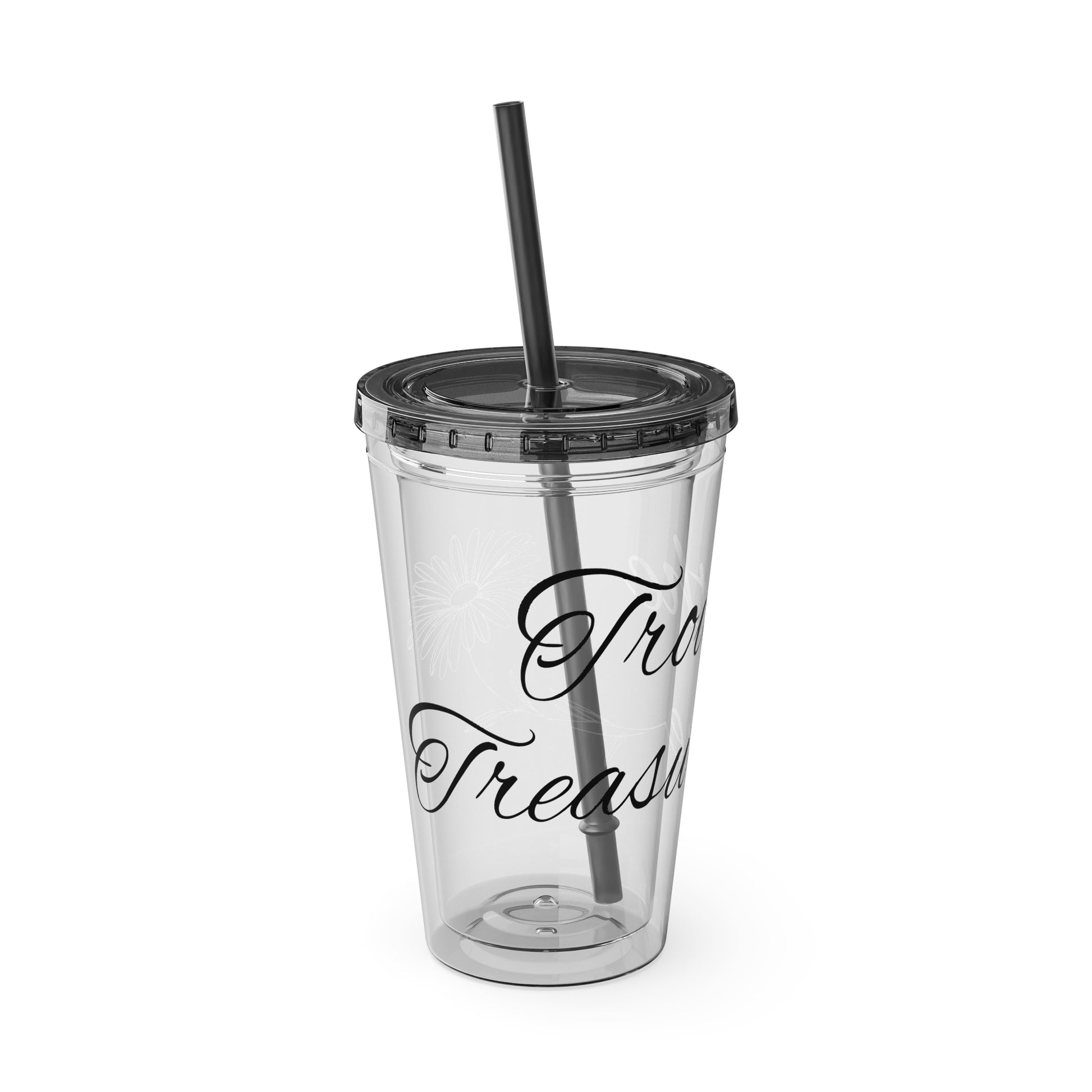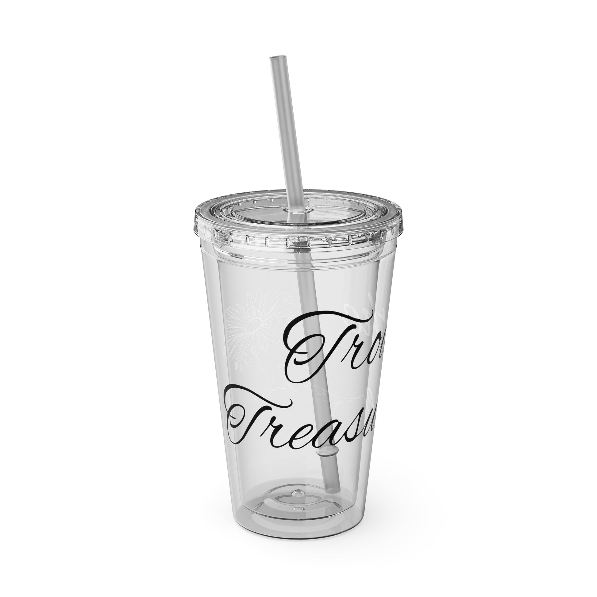 Sunsplash 16oz Tumbler with Straw - 'Treasure' Design, Clear Travel Cup for Drinks, Perfect Gift for All Occasions