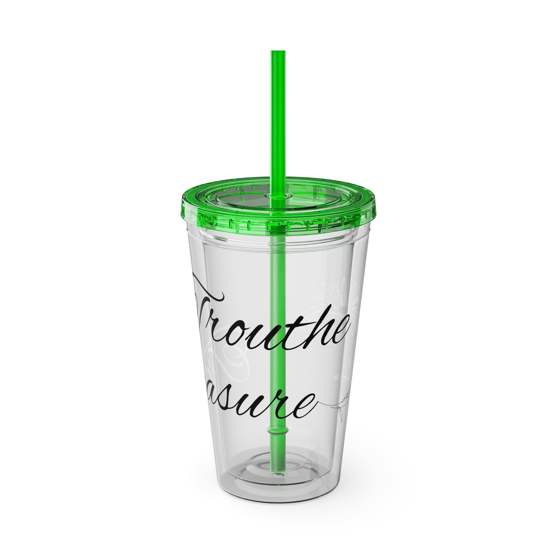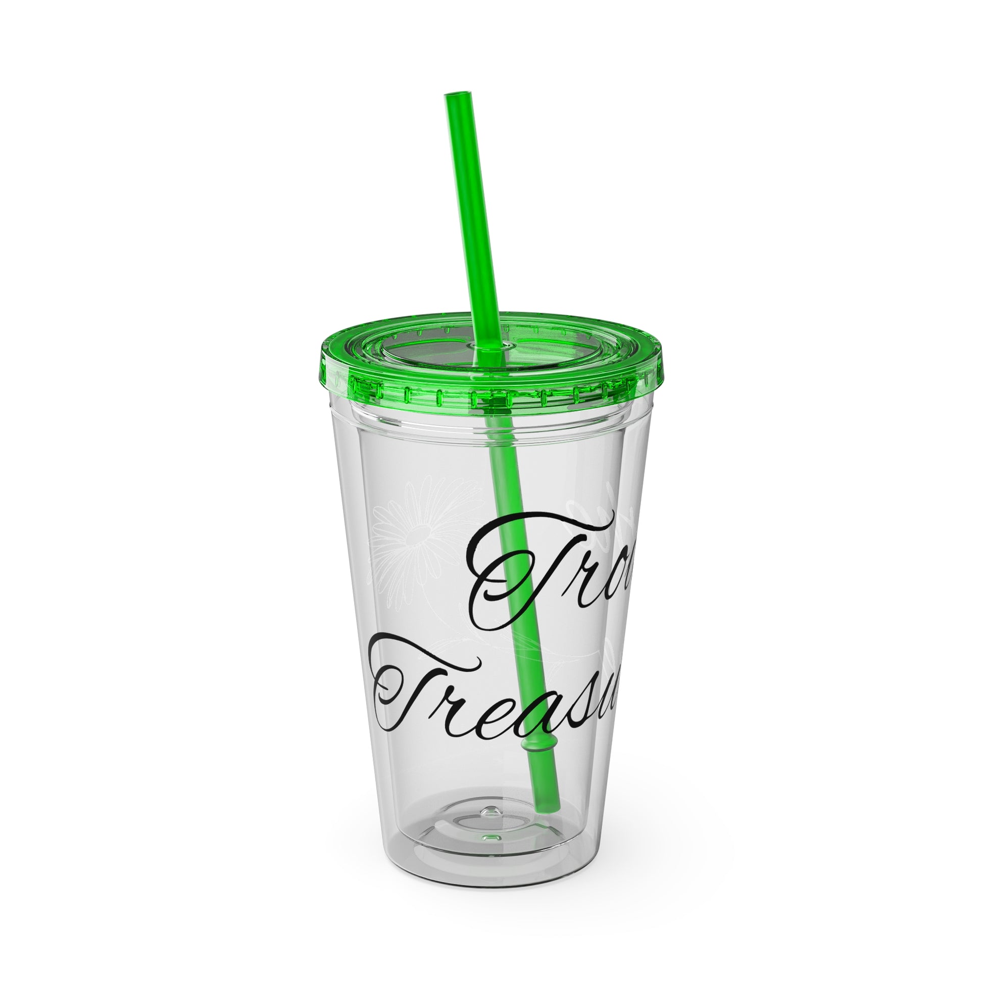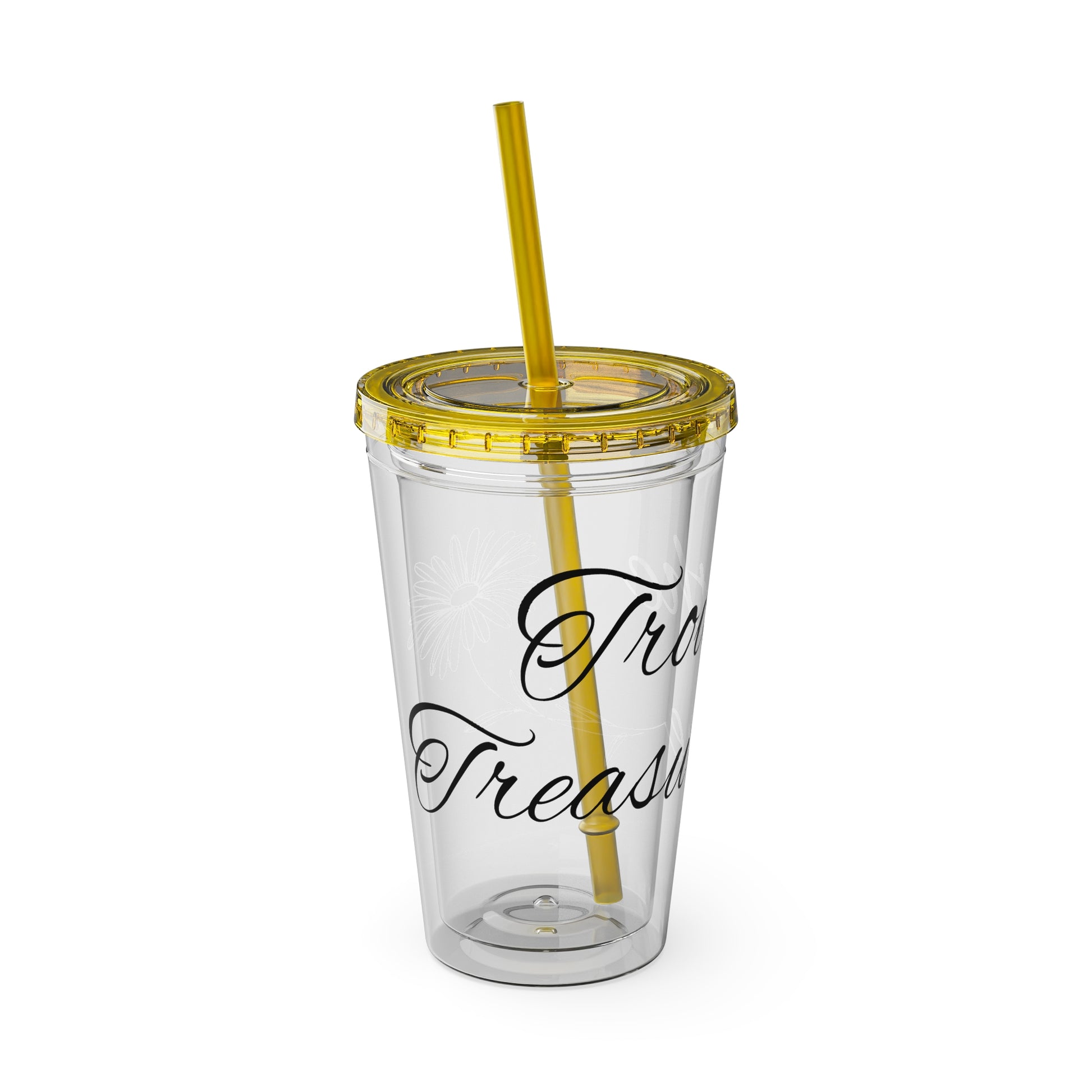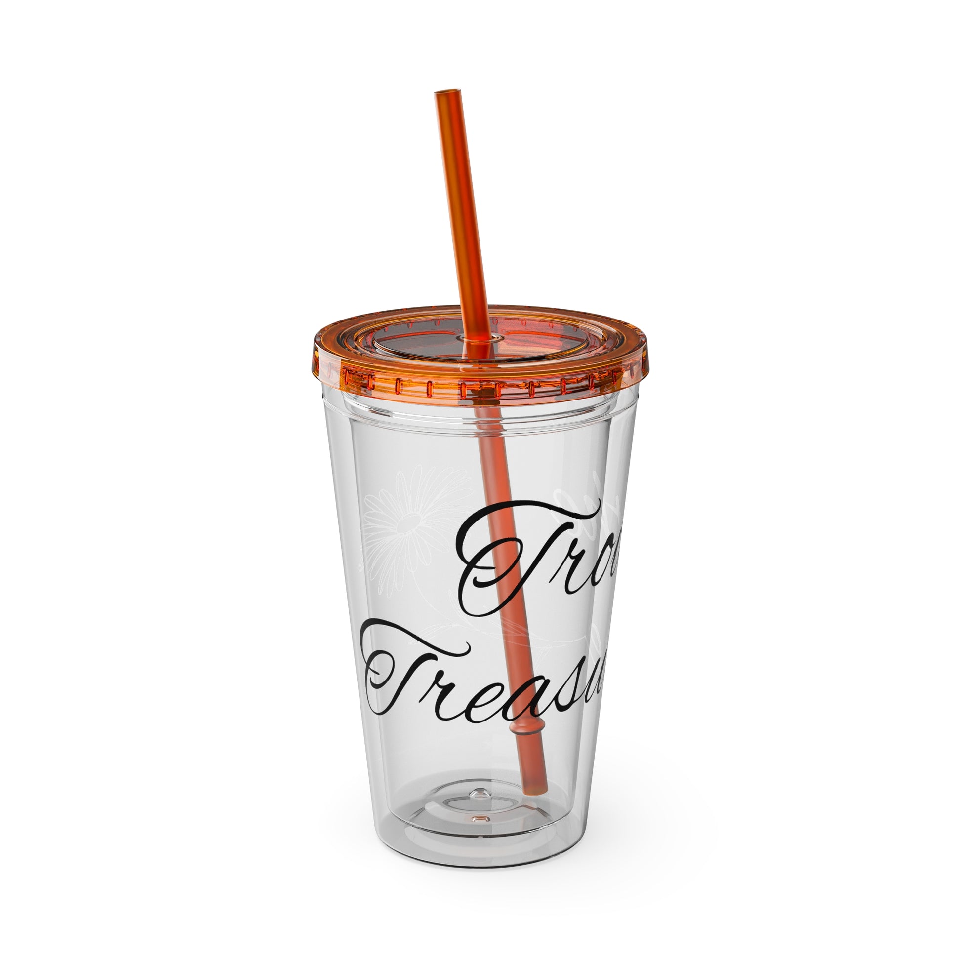 Sunsplash 16oz Tumbler with Straw - 'Treasure' Design, Clear Travel Cup for Drinks, Perfect Gift for All Occasions